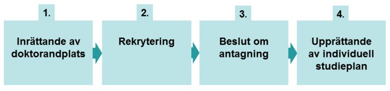 Här beskrivs processen för antagning till utbildning på forskarnivå vid institutionen. En process med syfte att säkerställa att det för varje doktorand finns förutsättningar för en forskarutbildning av hög kvalitet.